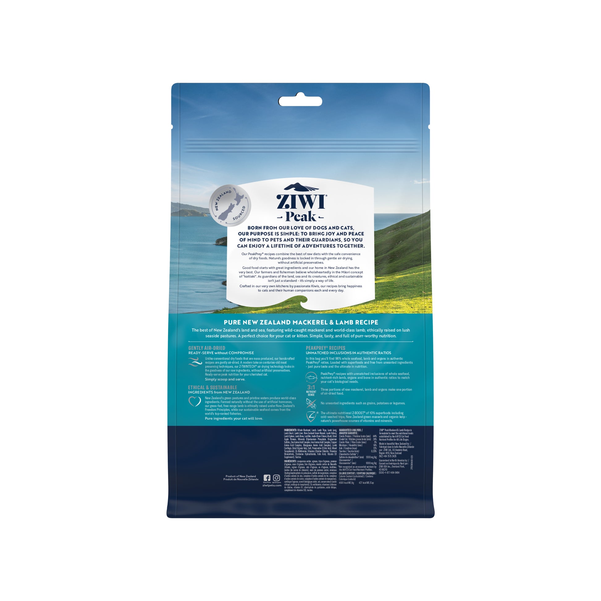 • HIGH MEAT. GENTLY AIR-DRIED: ZIWI® Peak’s Originals Mackerel & Lamb air-dried recipe combines the nutrition of raw diets with the safe convenience of dry foods. Pure and simple, featuring 96% wild-caught mackerel, free-range lamb, organs, bone, and New Zealand Green Mussels, all gently air-dried to lock in nature’s goodness. A nutrient-dense recipe, one portion of dry food is made from three portions of raw seafood, lamb, and organs. Ready-serve peak nutrition. Simply scoop & serve.