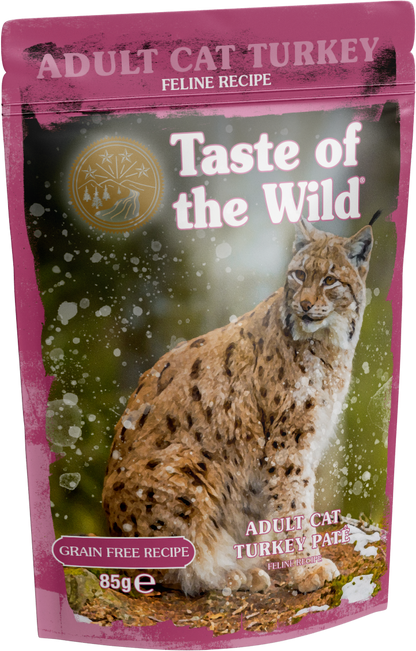 Taste of the Wild Adult Cat Turkey Pate is a complete and balanced wet pet food, containing premium quality meats which provide the essential amino acids and protein that cats need to support healthy growth, maintenance and repair of muscle tissue. Vitamins and Minerals are added to ensure all essential nutrients are provided. There are no added artificial colours, flavours or preservatives.