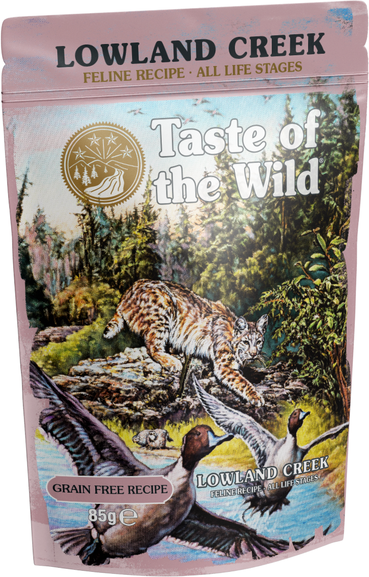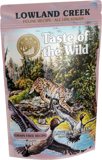 Taste of the Wild Cat Lowland Creek Chunks in Gravy is a complete and balanced wet pet food, containing premium quality meats which provide the essential amino acids and protein that cats need to support healthy growth, maintenance and repair of muscle tissue. Vitamins and Minerals are added to ensure all essential nutrients are provided. There are no added artificial colours, flavours or preservatives.